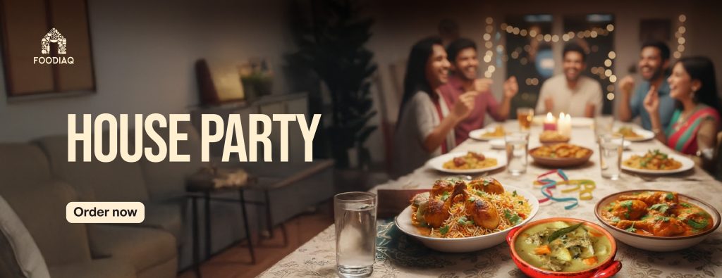 FoodiaQ offers complete house party catering in Mumbai, covering menu planning, food preparation, timely delivery, and professional setup. Our services are designed to fit perfectly into home celebrations, whether it is a small gathering or a lively house party.