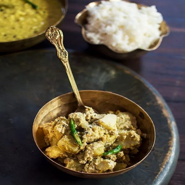 Hot rice, plain dal, and mashed potatoes with green peppers and mustard oil are comforting. Warm and healthful, this meal is the ultimate Bengali comfort food.