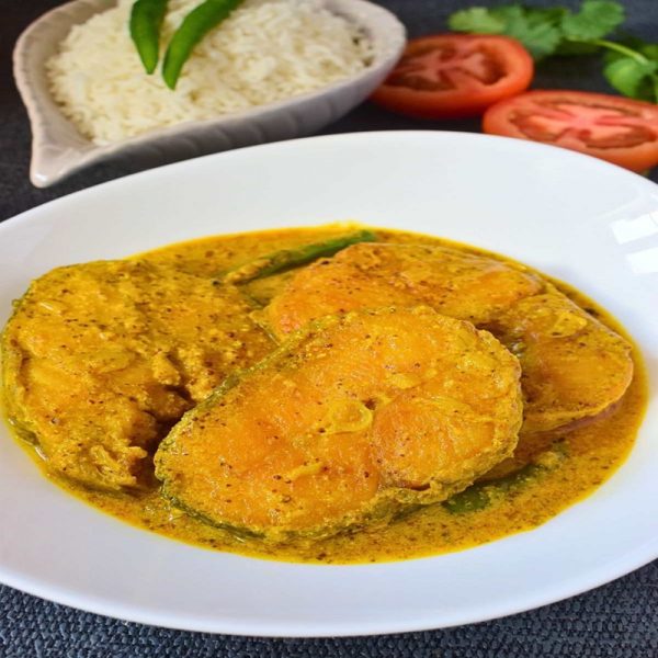 Fresh fish served in a creamy, tart yogurt gravy has delicate flavors. It’s light and wonderful with steamed rice for lighter fish curry.