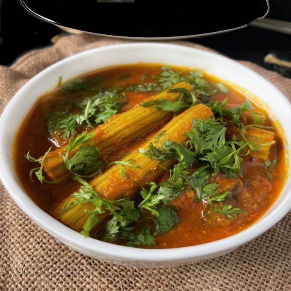 Served with steamed rice and aloo tuk, Sindhi Kadhi with Rice & Aloo Tuk Vegetables cooked in a tempered tomato besan sauce
