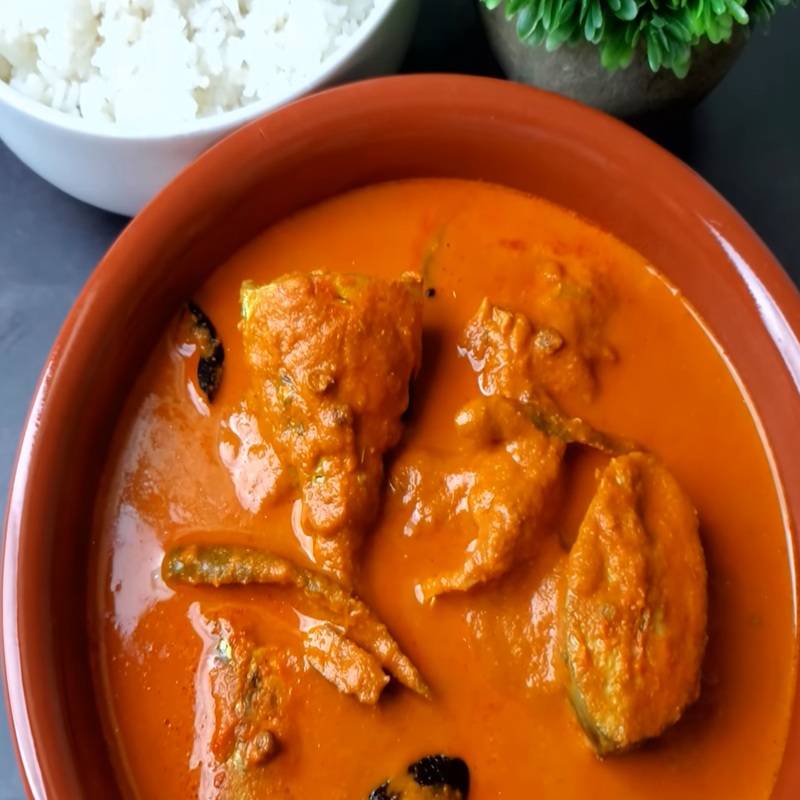 Fish curry made with Bangda (Mackerel) simmered in a light coconut based hooman (curry) with gentle spices. Delicate, comforting and mildly flavoured, Bangda Hooman pairs beautifully with steamed rice.
