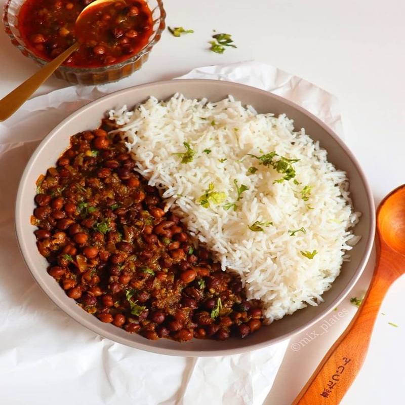 A nutritious curry made with black channa that is soaked boiled and cooked in spices. The gravy is moderately thick. A filling and protein rich dish.