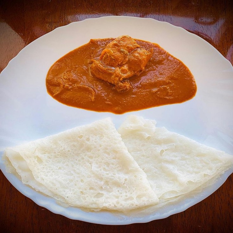 Succulent Chicken simmered in a creamy coconut based Gassi Gravy full of authentic Mangalorean spices served with soft Neer dosa to soak up all the flavours