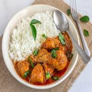 Tender Chicken simmered in a flavourful coconut and spice infused Gassi served with steaming hot Rice to enjoy a hearty comforting south Indian meal