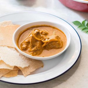 Tender Chicken cooked in a rich coconut based Gassi Gravy paired with kori rotti perfect for dipping and savouring the flavourful curry
