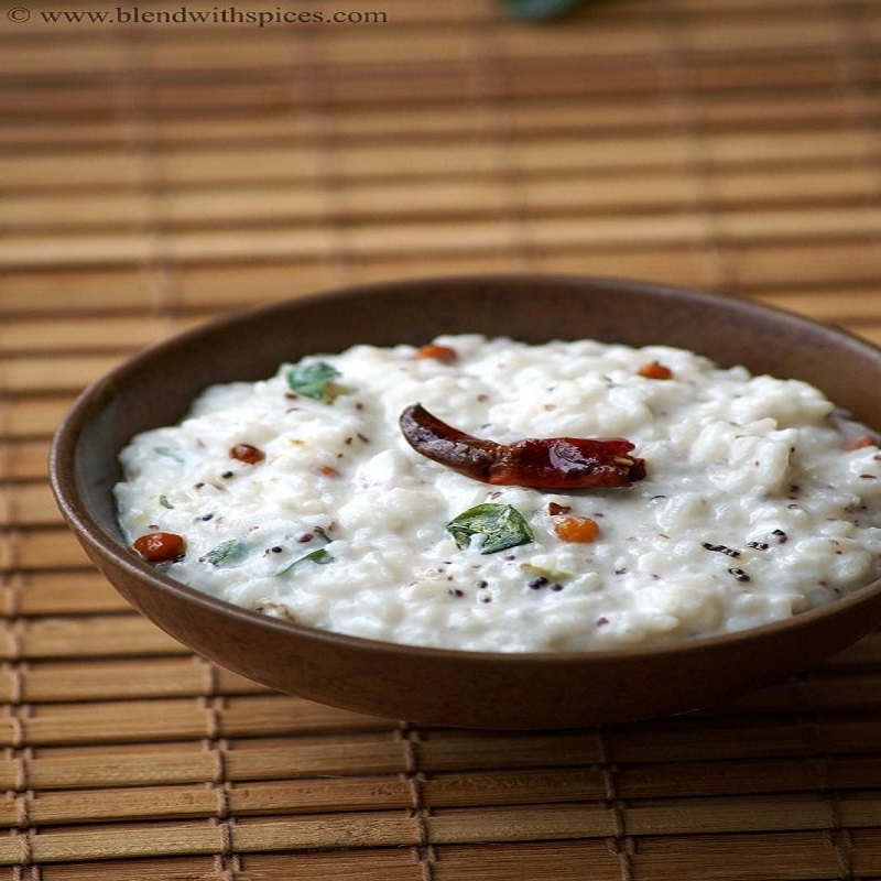 Soft curd mixed rice tempered with mustard ginger and curry leaves Served with tangy tomato chutney for a soothing meal.