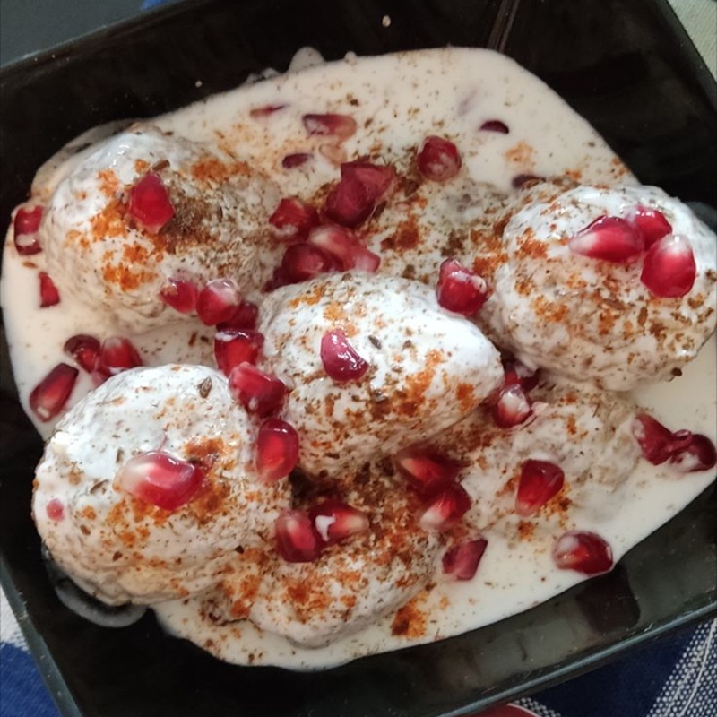 Dahi Vada is made with spongy urad dal dumplings soaked in creamy yogurt, topped with aromatic spices and vibrant pomegranate seeds. A beloved Bihari snack, it is refreshing and flavorful.