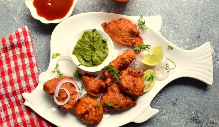 Fresh fish pieces marinated with spices, coated in a light batter, and fried until crisp on the outside while remaining soft and flaky inside.
