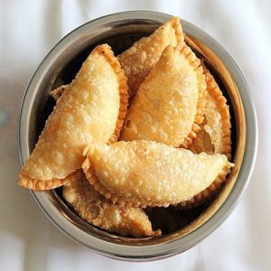 Ghughra in Gujarat and Karanji in Maharashtra are deep fried sweet dumpling popular in Diwali and Holi.