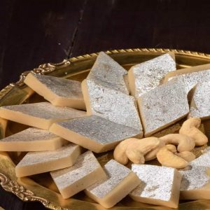 A classic Indian sweet made from finely ground cashews and sugar syrup, cooked to perfection for a silky, rich texture that simply melts in your mouth.