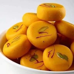 A fragrant and luscious sweet made from khoya, sugar, and saffron strands, offering a perfect balance of creaminess and aroma in every bite.