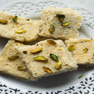 A classic Indian sweet prepared with grated coconut, milk, and sugar, slowly cooked to form a dense and flavorful barfi that celebrates the pure taste of coconut.