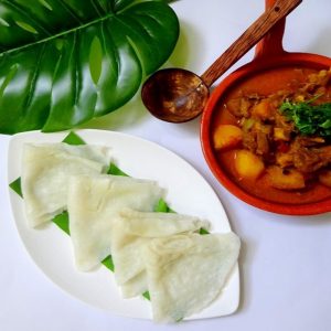 Aromatic Mutton cooked in a traditional Gravy served with light and soft Neer dosa to soak up the full bodied flavors of the dish