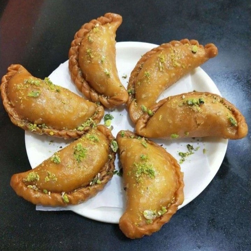 Pedakiya is a traditional Indian sweet made by deep frying a spiced khoya and dry fruit filling until golden and crisp. Rich, flavorful and indulgent, it is a beloved festive treat.