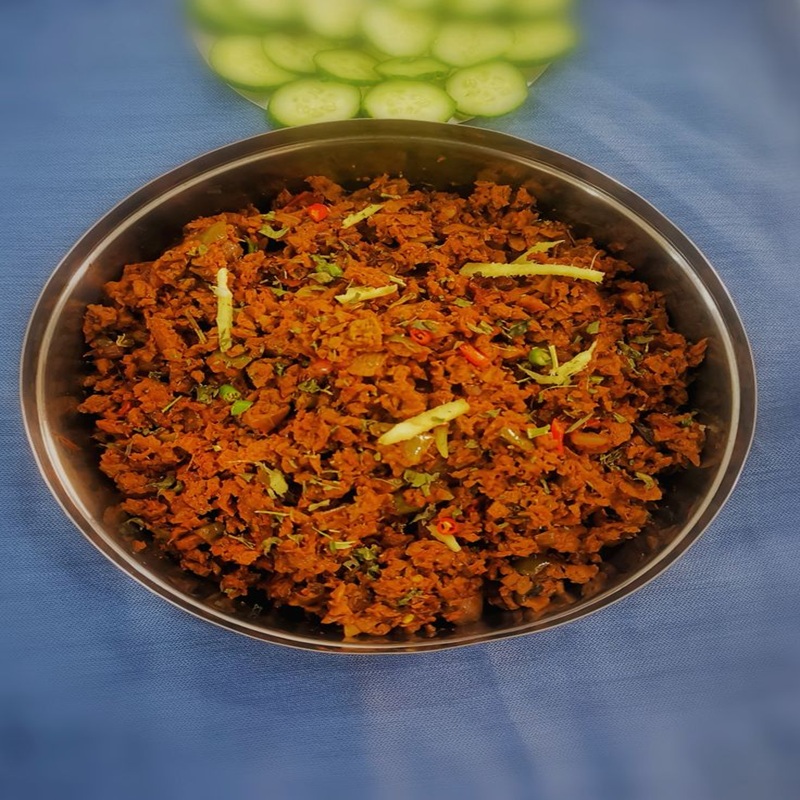 A vegetarian curry made using soya granules as the main ingredient. Cooked in spiced gravy with onion and masala base. A high protein meat alternative.