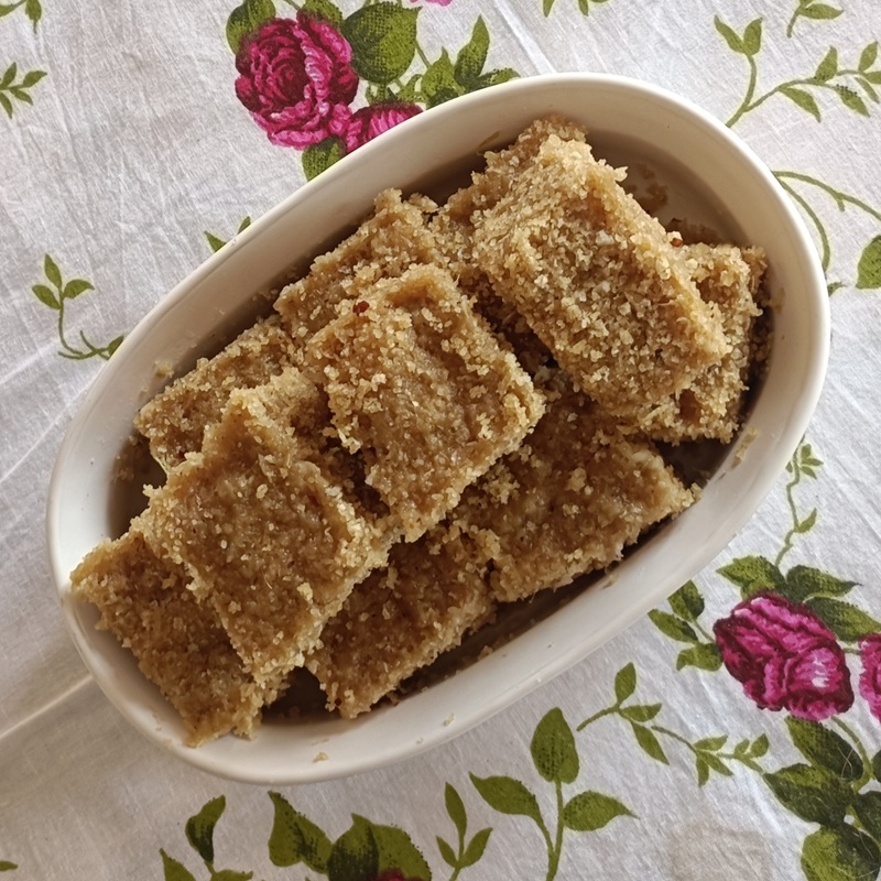 A gentle GSB steamed sweet made from grated cucumber combined with coconut and jaggery, set into a soft, moist cake. Light on the palate and delicately aromatic, Tavsali Muddo is a comforting festive favourite.