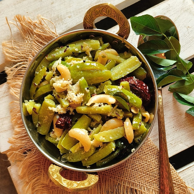 A traditional GSB upkari made with tendli (ivy gourd) and bibbe (cashew nuts), lightly cooked with coconut and gentle spices.