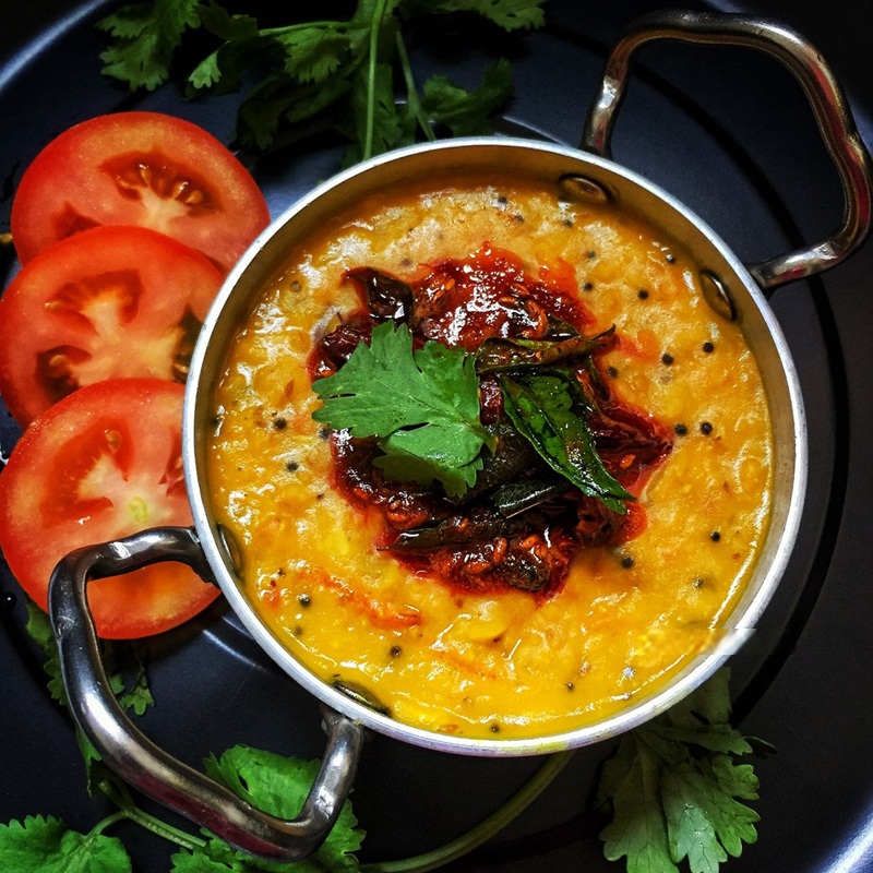 Toor dal is cooked slowly with tomatoes and spices and finished with a tempering to enhance its flavor then served with steamed rice.