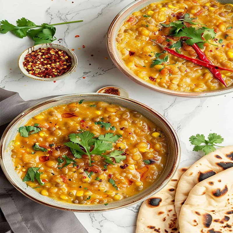 A nutritious blend of three dals cooked together for a rich earthy taste. Served with fresh chapatis that pair beautifully with the smooth texture. A balanced everyday meal offering protein and comfort.